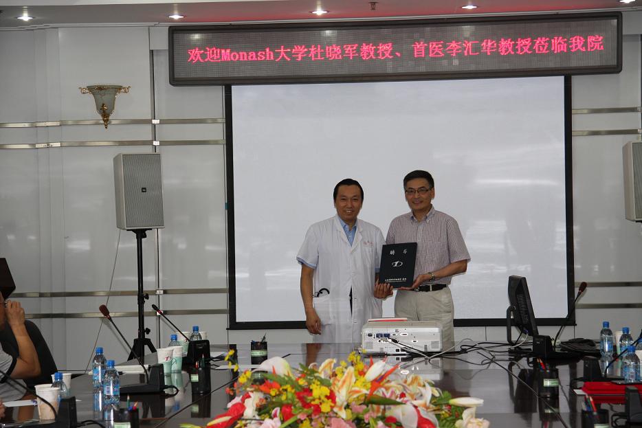 8月19日澳大利亚Monash大学医学部教授杜晓军博士及首都医科大学教育部心血管重塑相关疾病重点实验室副主任李汇华博士来我院进行学术交流活动。