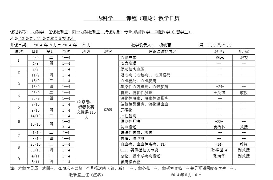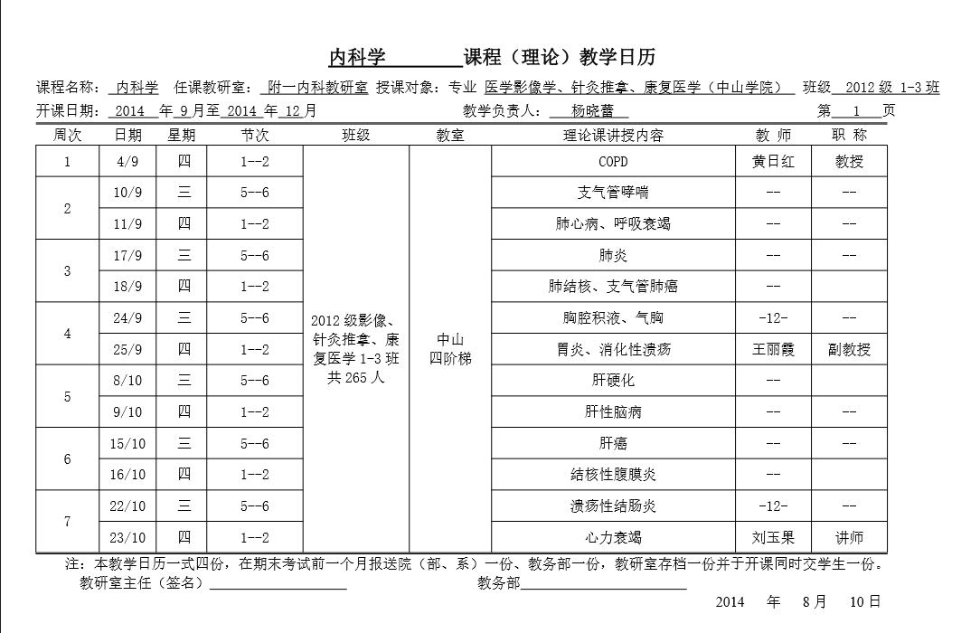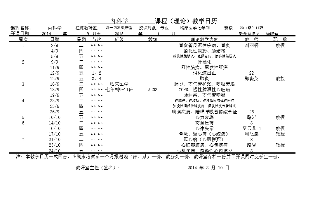 2014学年下半年教学工作分配安排表格