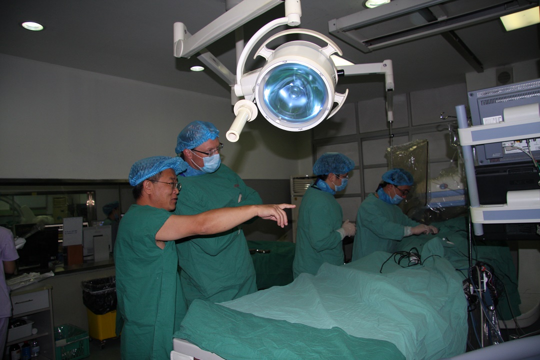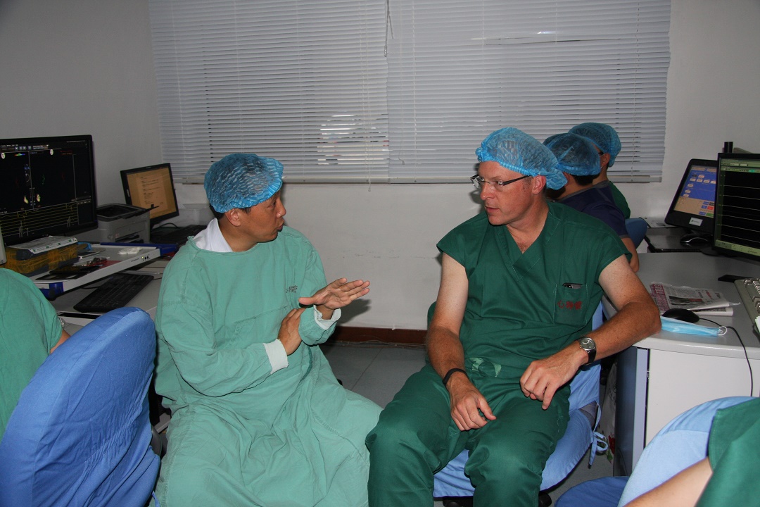 Michael Mangrum教授与张数龙教授共同开展心电生理手术。