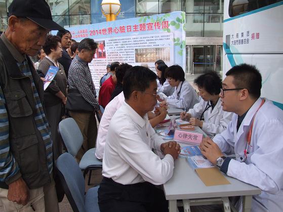 2014年9月29日是第14届世界心脏日,今年的主题为“健康的心脏环境”( create heart-healthy environments),以此引起人们重视生活环境对心脏健康的影响。同时,世界心脏联盟发起了“健康的心脏环境-全球呼吁”活动。为响应世界心脏联盟的号召,宣传心脏知识、普及心脏急救常识,为大连人民的心健康服务,由大连市慈善总会、大商集团与大连医科大学心血管病医院共同发起的“心健康快车义诊活动”在9月28、29日启动,首站大商步行街取得了圆满成功。