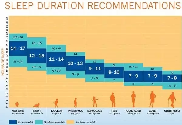 以前的研究已经证实,睡眠缺乏会使人发胖,增加患心脏病、糖尿病的风险,缩短寿命。为了确定人们生命每个阶段到底需要多长时间的睡眠,美国国家睡眠基金会成立了一支由18名睡眠学、解剖生理学、神经学、儿科、老年医学和妇科专家组成的专业小组。科学家们花了两年时间,制定出了目前最新的睡眠指南。他们的研究结果还揭示,从4个月大的婴儿到17岁的青少年,人们需要的睡眠时间比之前认为的更多。他们的报告指出:“重要的是,专家组强调指出个体的睡眠时间比建议的时间长或短不会引发负面效应。然而,睡眠时间远远偏离正常范围的个体可能要进行强制睡眠干预,或表明他们身上出现严重的健康问题。”