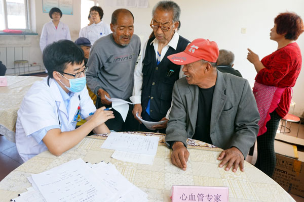 清晨6点半,“心”健康快车带着大医心血管病医护团队一行14人便开始驶向塔岭镇。塔岭镇地处辽宁省庄河市最北部,与岫岩县新甸乡接壤。尽管我们已经尽早启程,但翻山越岭到达塔岭镇卫生院的时候已经上午10点,卫生院门口早已聚集了上百名村民,为了能够早点参与此次体检他们甚至早上6点就在这里排队等候。车刚一停稳,医护团队便搬着我院先进的血压检测仪、心电图监测仪、心电超声仪器等设备进入卫生院开始工作。塔岭镇村民们用着淳朴的热情排在各个检查室门边、围在各个医生身旁,问着各种关于健康及预防疾病的问题。很多村民对语言含义的理解有些慢,将同一个问题提了一遍又一遍,但我们的医生努力用着各种简单的表达方式、不厌其烦地为他们重复解答。2天时间里,医护人员共为428位塔岭镇村民提供了心血管健康检查,心血管专家杨光教授、高欣医师和朱凌倜医师还对村民们进行心血管健康评估。由于当地基础条件比较落后,很多村民不能定期进行体检,即便有病了也是仗着身体结实而硬抗,因此体检反映出来的身体状况也比较复杂。其中有13位病情比较严重的村民,医生当即留下联系方式,建议其尽快到大医心血管病医院就诊,并留下记录录入系统,以备随时调出患者病情档案。